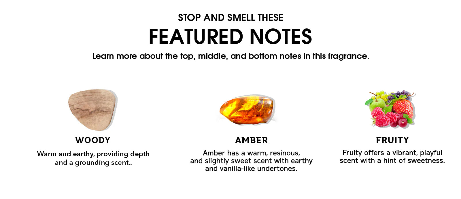 Top notes are Fresh And Woody: Middle notes are Green, Amber Base: notes are Citrus And Fruity